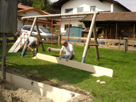 Dank des Engagements zahlreicher Eltern, der UWG und der Spendenfreudigkeit im Goldenen Tal kann der Spielplatz samt Bolzplatz in Holzolling in Eigenarbeit gebaut werden. Einweihung 29.05.1993