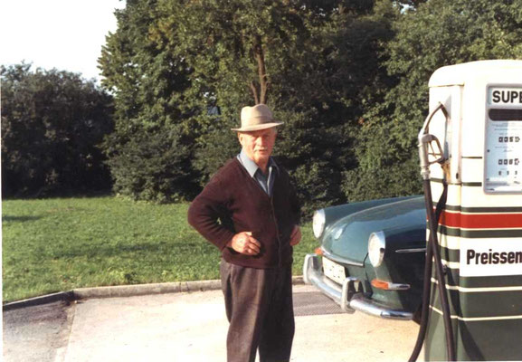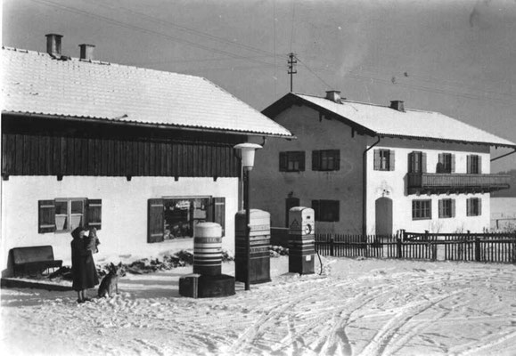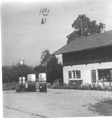 der Familie Riedlechner mit zwei Zapfsäulen und einer Pumpsäule für Diesel von 1957 bis in die 1970er Jahre.