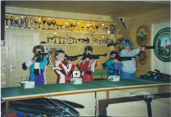 Bis 1991 wird dann im Saal geschossen. Dazu müssen die 6 Schießstände jeweils auf- und wieder abgebaut werden.
