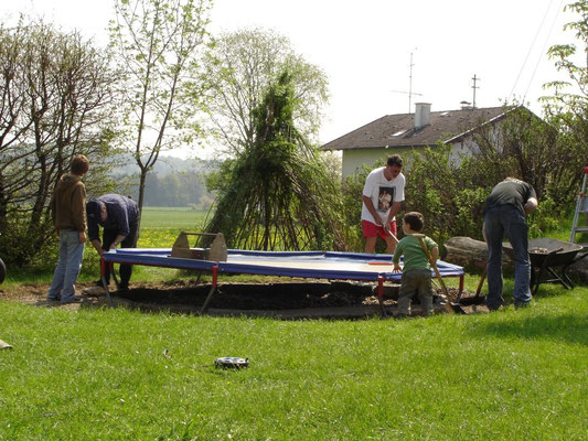 Errichtet 2002-2004 in 555 Tagen mit 6500 ehrenamtlichen Arbeitsstunden und großzügigen Sachspenden (Holz).