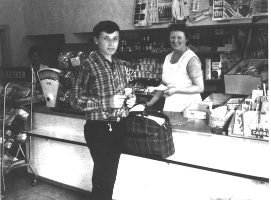 6a - 1. Standort der Tankstelle vor dem Fahrradgeschäft (5) bzw. der Bäckerei (4) von Mitte der 40er Jahre bis 1957.