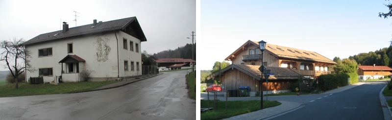 Altes Riedlechnerhaus gegenüber der Tankstelle und heute 2025
