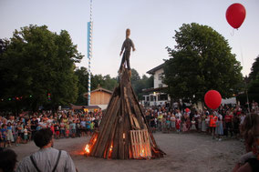 Auf das jeweilige Brandgeschehen zeigt die Jugendfeuerwehr das richtige Verhalten und die empfohlenen Löschmittel.